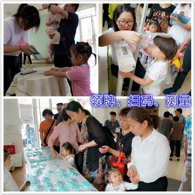 分散活动 活动前夕,晨星指导站提前向家长发布活动通知与要求。活动当天,家长带领宝宝们,在志愿者老师的引导下,宝宝自主找寻名字牌,排队扫码签到,并分月龄段进行身高体重的测量,再进入对应的活动室参与游戏活动。