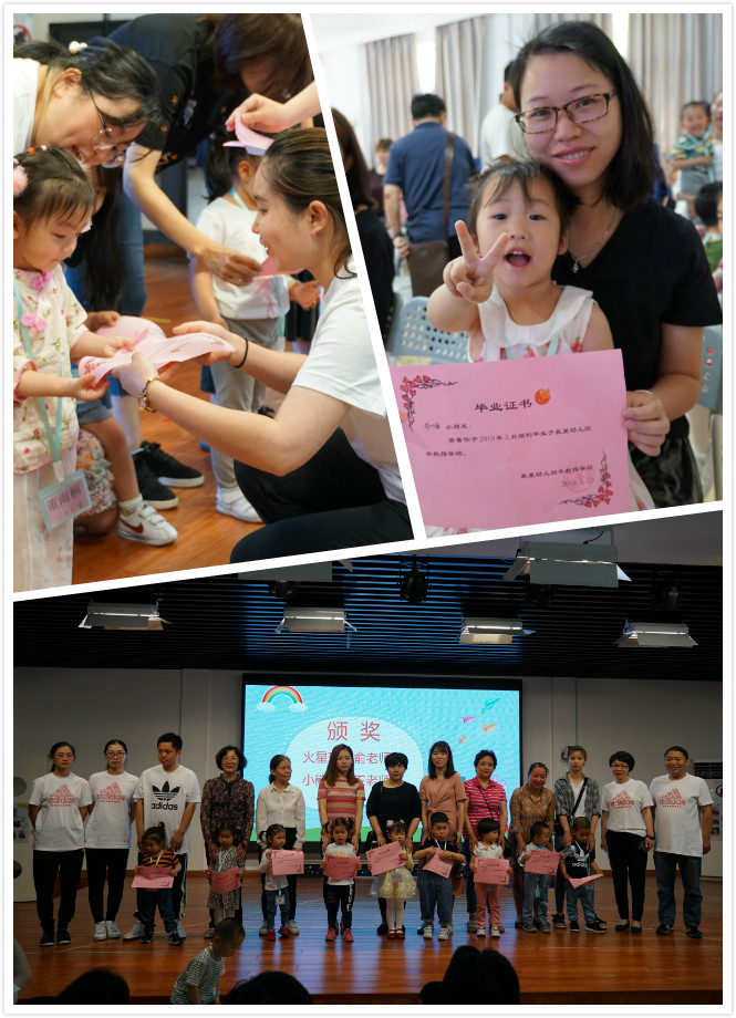 集中活动 9:40分,在班级老师的带领下,所有的家长和宝宝排好队,有序入场就座。欣赏老师们的节目,为大月龄即将入园的宝宝颁发早教毕业证书,家长代表发表感言等等。节目很精彩,吸引了全体观众的目光;颁奖很开心,老师和班级宝宝、家长合影。姚彦伊爸爸代表全体大月龄宝宝的家长发言:感慨宝宝参加每次早教活动的表现与变化,感谢幼儿园的组织与老师的指导,也期待着宝宝接下来三年入园的成长。最后主持人教师带领全体宝宝表达对可爱的老师、可亲的家人的真心感谢!
