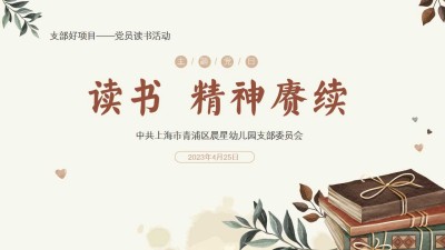 党的二十大提出:深化全民阅读活动。 恰逢第28个世界读书日之际,晨星幼儿园党支部与书有约,召开“读书 精神赓续”主题党日活动,以“支部好项目”之“品读·行走”党员读书活动倡导党员干部带头读书,引领爱读书、读好书、善读书的读书氛围。
